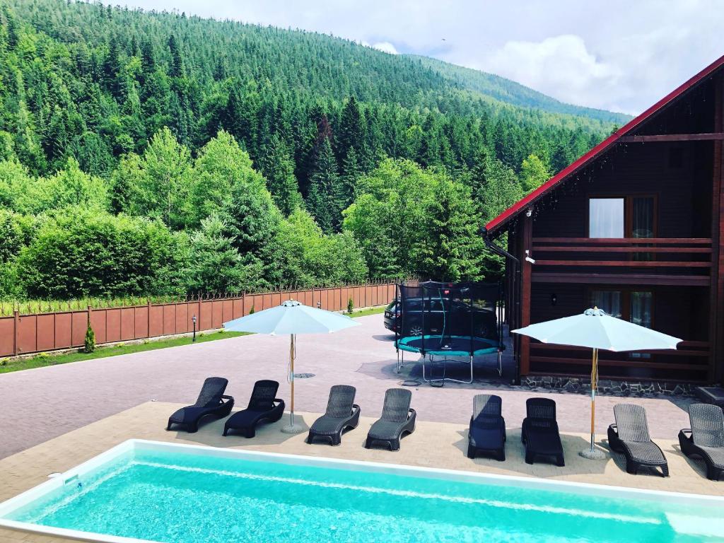 Located 17 km from Waterfall Probiy, Bambetli offers accommodation with a balcony, as well as pool with a view and barbecue facilities. This property offers access to a terrace, free private parking and free WiFi. Guests can make use of the outdoor f...
