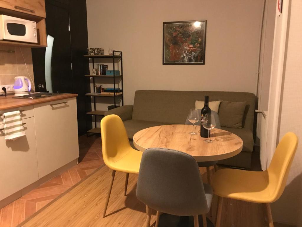 Gudauri Ski Studio is set in Gudauri and offers a terrace. Free WiFi is at guests' disposal throughout the property. The apartment has 1 bedroom, 1 bathroom, bed linen, towels, a flat-screen TV with satellite channels, a dining area, a fully equippe...